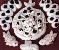 Dough sculptures are popular wedding and birthday gifts. They are also considered appropriate for prayer and memorial ceremonies and sacrificial offerings. Farmers place steamed dough sculptures before spirit tablets. Today, dough sculptures often appear among dishes on high-grade banquets to beautify and decorate the dishes, and add foils to the banquet atmosphere.