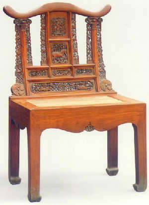 An important feature of Ming Dynasty furniture is that the items are beautifully shaped. The furniture is light and simple and conveys a sense of stability. The size and proportion of the different parts adhere to aesthetic principles but take practical use into consideration. The decorations are mainly engraved lines and small areas of circular carving and through carving. There may, however, also be wood, ivory and diamond inlays in the design of landscapes, flowers and birds or small bronze and silver ornamentation. The refined ornamentation in small areas form a strong contrast with the furniture's overall clean and simple appearance. The line of the edges of the piece is shaped in different lengths and widths depending on the grain of the timber to create a true and harmonious effect, so that the piece looks natural and balanced.