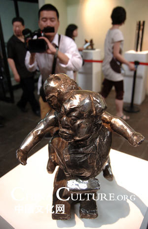 A visitor views an exhibit on the 2009 China (Hangzhou) International Annals Exhibition held at the West Lake Expo Museum in Hangzhou, capital of east China's Zhejiang Province, June 16, 2009. A collection of 150 pieces works from artists at home and abroad was on shown.
