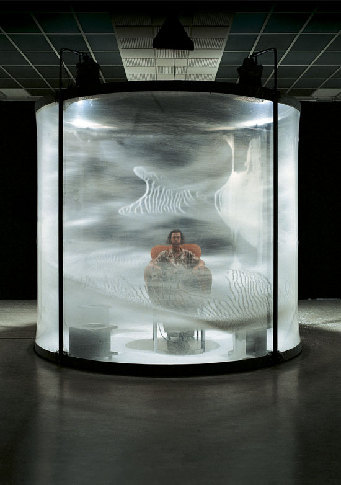 As part of the exhibition, visitors saw petunias in which DNA from humans and plants were integrated, and a simulated tornado created by particles of plastic foam blasted from five air blowers in a transparent installment. Besides, a mirror about the body height attracted many interested guests. When visitors approach, the mirror would crack and finally break into pieces when the cracking sound of the mirror was mocked by two voice boxes.