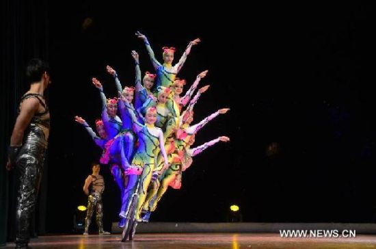 The China National Acrobatic Troupe performed famous programs of plates spinning, group diabolos, contortionist, bicycle skills and other performances at the occasion.