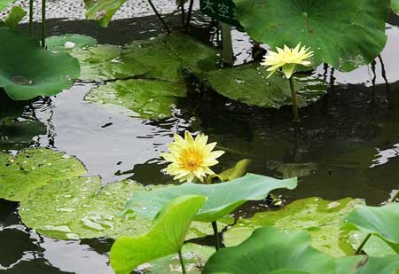 There are four exhibition sectors in the "Breeze-ruffled Lotus at Quyuan Garden" area: "Green lotus leaves welcome the guests", "the lotus pool of beauty and cheer", "lotus flowers with overflowing fragrance" and "cool wind blows over the lotus". The other exhibition area Guo Zhuang is the center of this year's lotus exhibition. In total, more than 410 kinds of lotus flowers and more than 20 kinds of water plants are displayed.