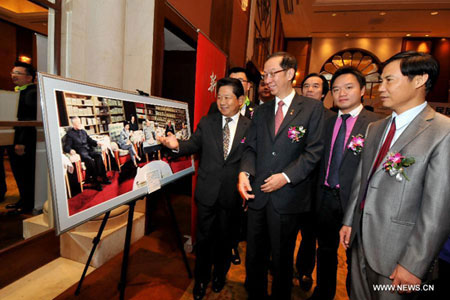 Malaysian Minister in the Prime Minister's Department Koh Tsu Koon (2nd L) and Chinese ambassador to Malaysia Chai Xi (1st L) view the photo exhibition in Kuala Lumpur, Malaysia, on June 12, 2012. The two-week Malaysia-China People's Friendship Photo Exhibition kicked off on Tuesday night at the auspices of Chinese ambassador to Malaysia Chai Xi and Malaysian Minister in the Prime Minister's Department Koh Tsu Koon and several other dignitaries in Kuala Lumpur as the two countries celebrate 38 years of diplomatic ties.(Xinhua/Chong Voon Chung)