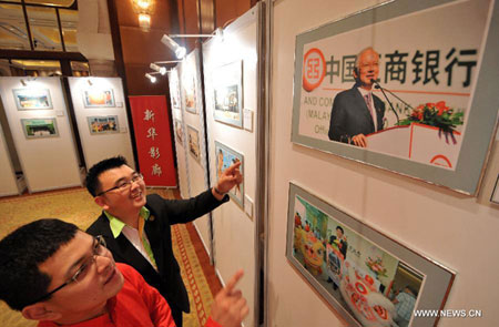 Visitors view the photo exhibition in Kuala Lumpur, Malaysia, on June 12, 2012. The two-week Malaysia-China People's Friendship Photo Exhibition kicked off on Tuesday night at the auspices of Chinese ambassador to Malaysia Chai Xi and Malaysian Minister in the Prime Minister's Department Koh Tsu Koon and several other dignitaries in Kuala Lumpur as the two countries celebrate 38 years of diplomatic ties.(Xinhua/Chong Voon Chung)