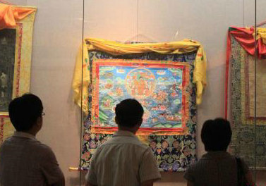 An exhibition of Tibetan Buddhist Art organized by the People's Government of the Huangnan Tibetan autonomous prefecture, Qinghai province, officially kicked off on Friday in the Shaanxi History Museum in Xi'an, capital of Shaanxi province.