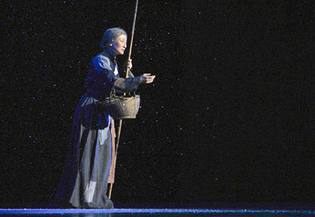 Chen Cheng, a winner of China's highest theatrical award "Plum Blossom Prize", performs Huai opera in Urumqi, capital of northwest China's Xinjiang Uygur Autonomous Region, Aug. 3, 2012. An art troupe consisted of winners of "Plum Blossom Prize" under China Federation of Literary and Art Circles performed 13 types of operas for audience in Urumqi on Friday. (Xinhua/Wang Fei)