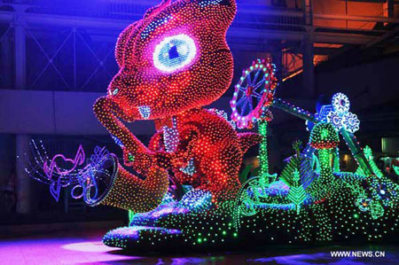 Photo taken on Aug 16, 2012 shows a float during an animation festival in Changzhou city, east China's Jiangsu province. The 9th China (Changzhou) International Animation Festival kicked off at China Dinosaur Park in Changzhou on Thursday. As a significant event of the festival, a float parade with themes of animation has been held, attracting plenty of visitors.[Photo/Xinhua]