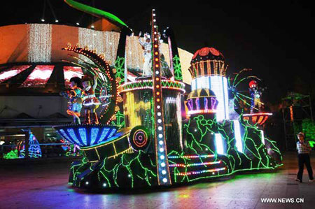 Photo taken on Aug 16, 2012 shows a float during an animation festival in Changzhou city, east China's Jiangsu province. The 9th China (Changzhou) International Animation Festival kicked off at China Dinosaur Park in Changzhou on Thursday. As a significant event of the festival, a float parade with themes of animation has been held, attracting plenty of visitors.[Photo/Xinhua]