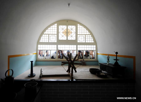 Middle school students visit an exhibition on people's daily items in past time at a museum in Zhoujiajian Town of Zizhou County, northwest China's Shaanxi Province, Aug. 22, 2012. (Xinhua/Yan Yan)