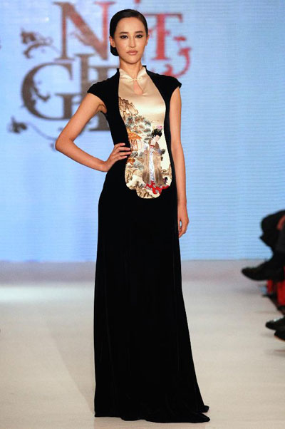 A model displays a creation of Chinese brand NE TIGER during the Milan Global Fashion Summit in Milan, capital of Italy, on Sept. 7, 2012. (Xinhua)