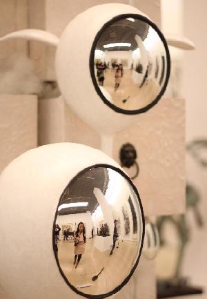 The shadow of visitors are cast on art works at the 5th China Beijing International Art Biennale at the National Art Museum of China in Beijing, capital of China, Oct. 11, 2012. Some 700 art works created by artists from 84 countries and regions were displayed at the exhibition that will last till Oct. 22.