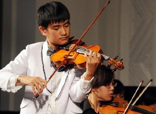 A violinist of Taipei plays "The Four Seasons" by Vivaldi during a concert in Taipei, southeast China's Taiwan, Oct. 4, 2012. A concert by young musicians from the Chinese mainland, Taiwan, and south China's Hong Kong and Macao was held here on Sunday.