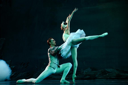 Dancers of the Russian State Bullet perform "Swan Lake" at the Gansu Grand Theatre in Lanzhou, capital of northwest China's Gansu Province, Jan. 11, 2013.