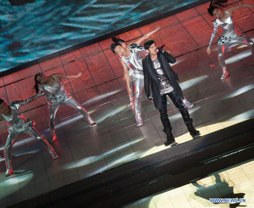 Jay Chou performs during the closing ceremony of the 2013 Beijing International Film Festival in Beijing, capital of China, April 23, 2013. The festival closed on Tuesday. (Xinhua/Zhang Yu)