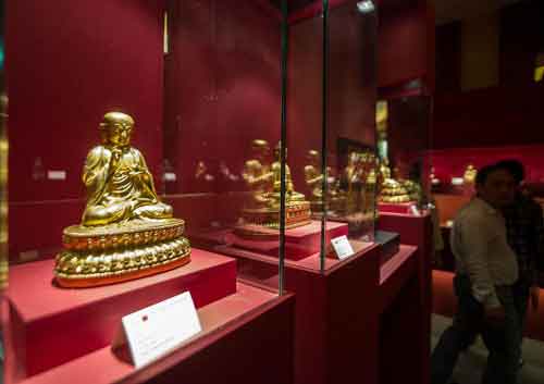 Buddha statues are displayed during the preview of China Guardian 2013 Spring Auctions in Beijing, capital of China, May 7, 2013. The three-day preview that opened on Tuesday displayed some 3,900 treasures to be auctioned on Friday. (Xinhua/Luo Xiaoguang)