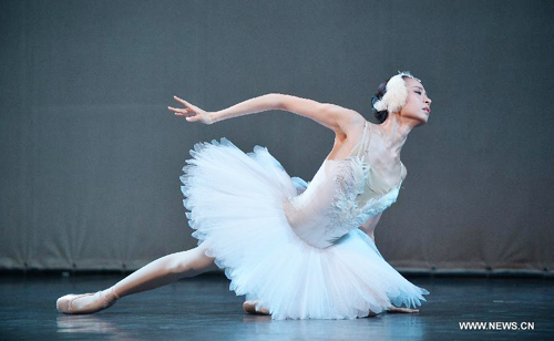 An actress of the National Ballet of China performs at the Beijing Institute of Fashion Technology in Beijing, capital of China, May 14, 2013. The performance was part of the activity of "introducing high arts to schools", which was started in 2006 and was aimed at improving the aesthetic faculties of the young. [Photo/Xinhua]