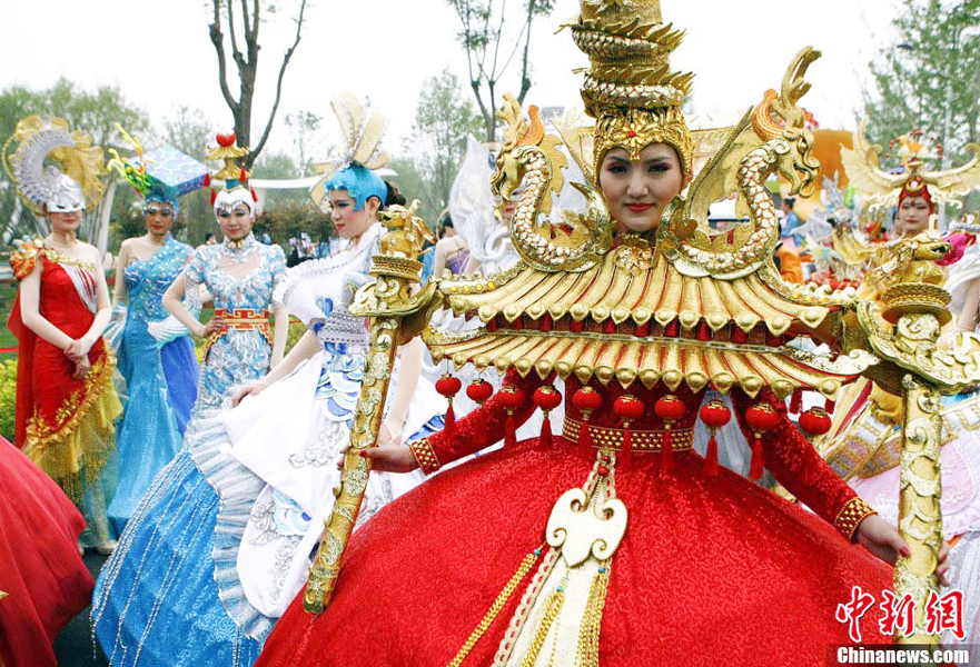 A model presents "Tian'anmen" landscape costume at the opening ceremony of the 9th China (Beijing) International Garden Expo in Fengtai District, Beijing, May 18, 2013. (CNS/Li Huisi)
