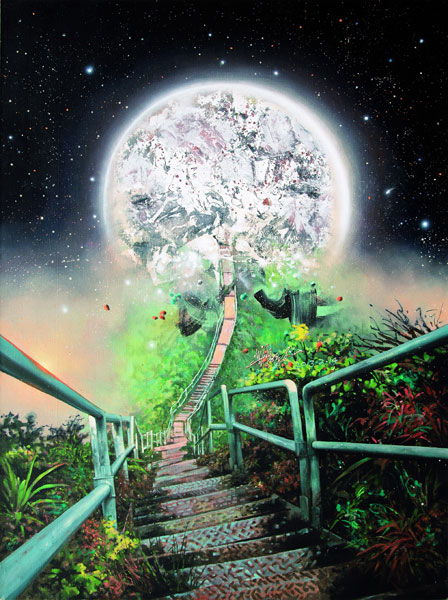 To the Moon, acrylic on canvas, by Zhong Biao.