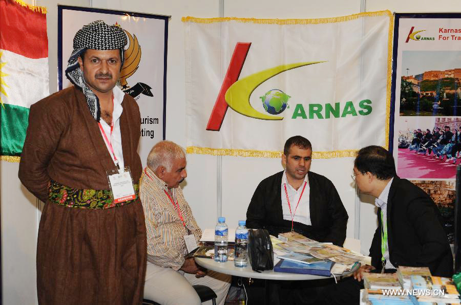 Traders communicate at an exhibition booth during the 27th Hong Kong International Travel Expo in South China's Hong Kong, June 13, 2013. The four-day expo kicked off here on Thursday at Hong Kong Convention & Exhibition Centre. [Photo/Xinhua]