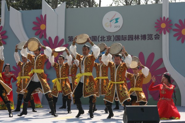 Xinjiang performers with traditional musical instruments, Crape Myrtle Square, on June 23. (chinadaily.com.cn)