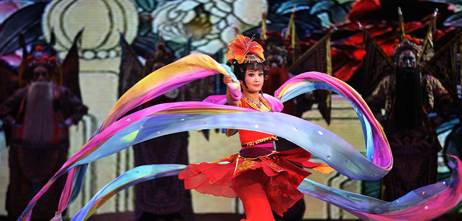 A dancer performs at the opening ceremony of the 3rd Dunhuang Travel -- Silk Road International Tourism Festival in Dunhuang City, northwest China. Photo/xinhua
