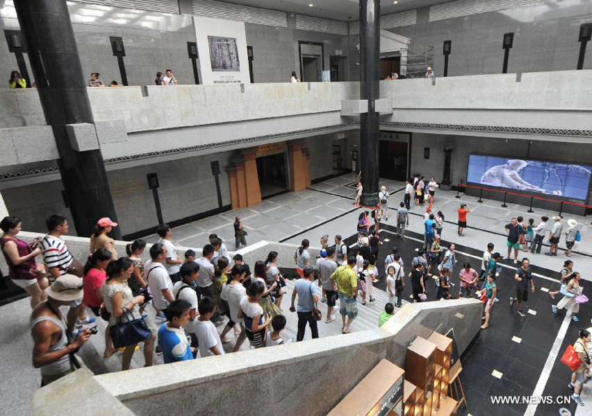 Tourists visit the terracotta warriors and horses at the Emperor Qinshihuang's Mausoleum Site Museum in Xi'an, capital of Northwest China's Shaanxi province, Aug 20, 2013. The museum witnessed a tourism peak since August.[Photo/Xinhua]