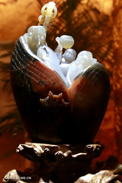 Photo taken on Sept. 24, 2013 shows an artwork made with agate displayed at the 2013 Beijing International Jewelry Expo in Beijing, capital of China. The expo will last from Sept. 24 to Oct. 12. (Xinhua/Li Mingfang)