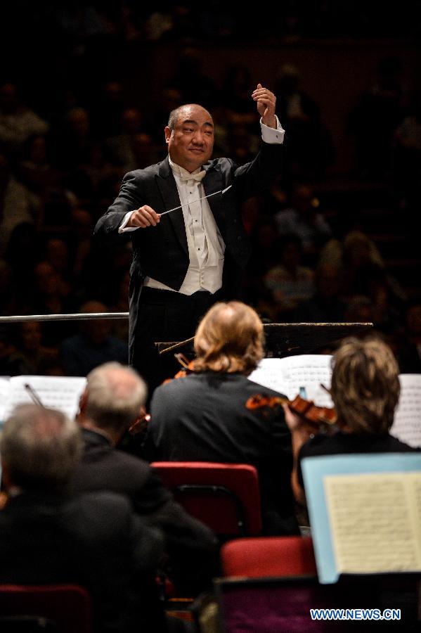 Chinese musician and orchestra maestro Xu Zhong conducts Haifa's Symphony Orchestra in Haifa, Israel, on Oct. 6, 2013. Chinese musician and orchestra maestro Xu Zhong took on the lead of Haifa's Symphony Orchestra for this year's season, in a bid to boost the Israeli city's musical scene and bring Israeli music to the international arena. The Shangai-based musician will spend a year in the coastal city, while a joint musical venture between the two countries will establish an international orchestra composed of 30 Chinese and 30 Israeli musicians chosen by Zhong himself, to play around the world. Zhong's first Haifa concert in Haifa on October 6 wowed the Israeli public with classical performances alongside the city's symphonic orchestra. [Xinhua/Li Rui]