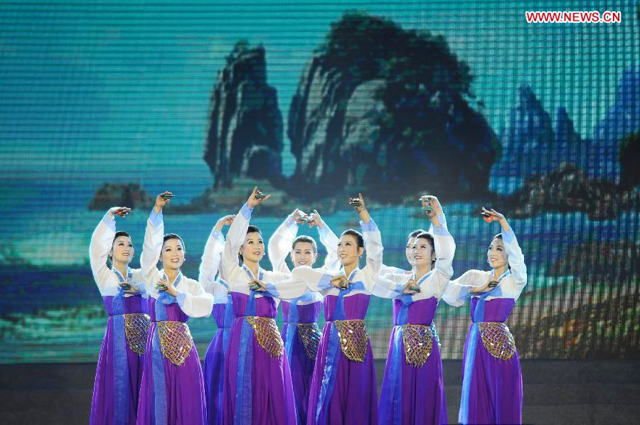 A performance is staged by artists of the Democratic People's Republic of Korea (DPRK) in Dandong, northeast China's Liaoning Province, Oct. 10, 2013. (Xinhua/Yang Qing)