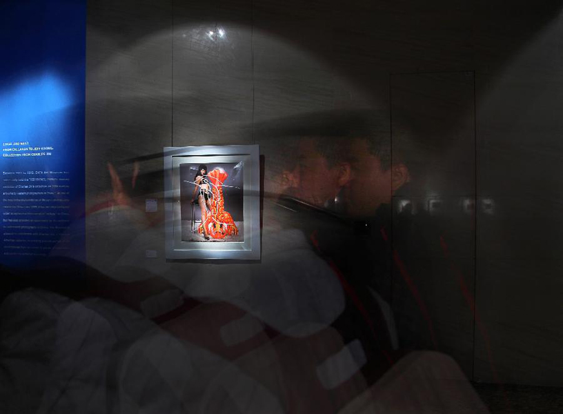 Visitors view photos at an exhibition of the Photo Beijing 2013 at the China Millennium Monument in Beijing, capital of China, Oct. 24, 2013. The Photo Beijing 2013 kicked off on Thursday, offering photographers, curators and artists a platform of communication and cooperation. (Xinhua/Lan Hongguang)