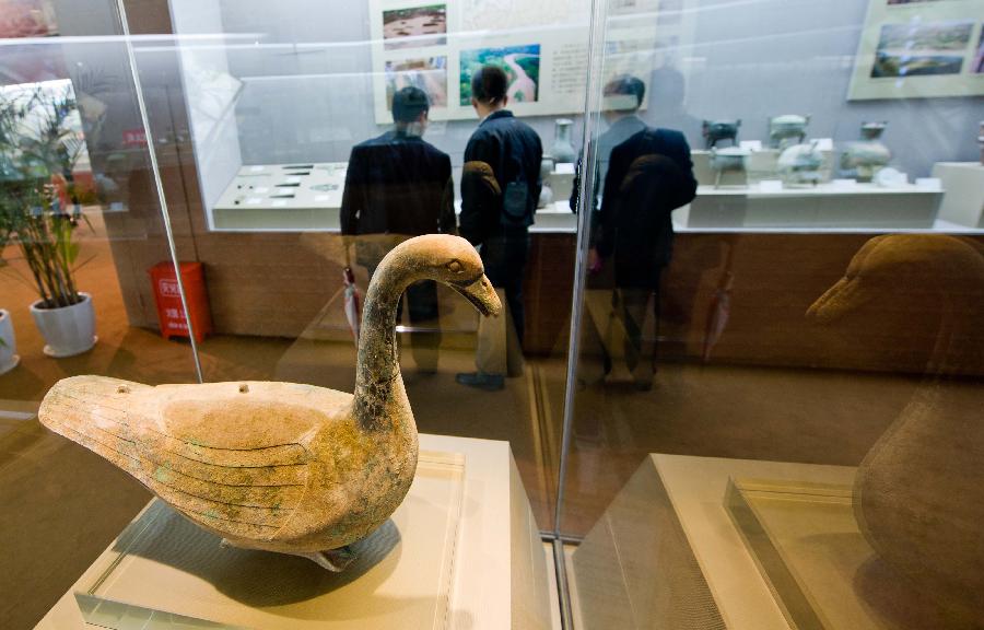 Photo taken on Oct. 29, 2013 shows a cultural relic exhibited during a cultural relics preservation exhibition of the Three Gorges in the Chongqing China Three Gorges Museum in Chongqing, southwest China. (Xinhua/Liu Chan)