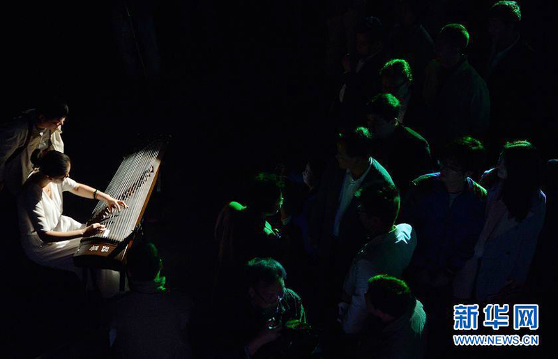 Photo taken on Oct. 26, 2013 shows a Chinese zither performance at the Lotus Meditation Inter-disciplinary Arts Appreciation event. Masterminded by U.S. artist Elyse Ribbons and Chinese artist Yishui, the event featured inter-disciplinary art works, artistic video clip, aromatic art, Chinese Zither performance, creative dance, wine and tea tasting, attracting over 100 members of the culturati, press and enterprises to extend their "five senses" to be part of it. (Xinhua/Wang Chuandong)