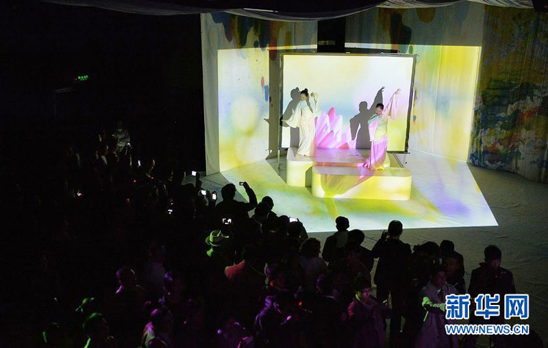 Photo taken on Oct. 26, 2013 shows a creative dance at the Lotus Meditation Inter-disciplinary Arts Appreciation event. Masterminded by U.S. artist Elyse Ribbons and Chinese artist Yishui, the event featured inter-disciplinary art works, artistic video clip, aromatic art, Chinese Zither performance, creative dance, wine and tea tasting, attracting over 100 members of the culturati, press and enterprises to extend their "five senses" to be part of it. (Xinhua/Wang Chuandong)