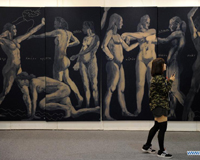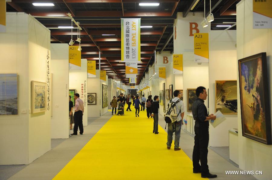 People visit Art Taipei 2013, Taipei, southeast China's Taiwan, Nov. 8, 2013. Art Taipei 2013, the longest-running art fair in Asia, was open to public here on Friday, presenting over 3000 artworks of more than 500 artists from 14 countries and regions. (Xinhua/Lu Peng)