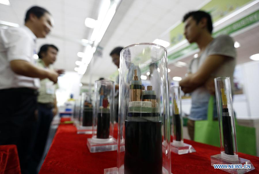 People visit the China-Asean (Myanmar) commodities exhibition at the Tatmadaw hall in Yangon, Myanmar, Nov. 12, 2013. The China-ASEAN (Myanmar) commodities exhibition kicked off in Yangon of Myanmar on Tuesday and will end Thursday. (Xinhua/U Aung)