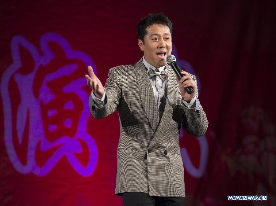 Chinese singer Cai Guoqing performs during a friendship performance for Croatian people and overseas Chinese in Zagreb, Croatia, December 19, 2013. (Xinhua/Miso Lisanin)