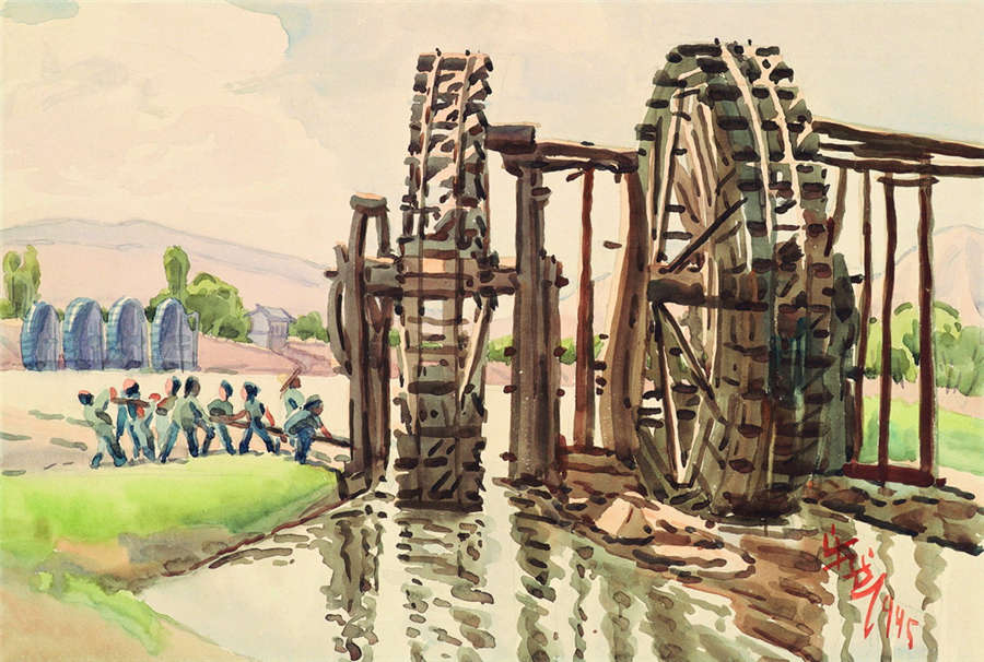1945, 32.1x47.5cm, water color, by Han Yueran. [Photo provided to China Daily]