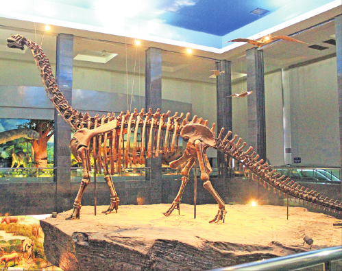 The 26-meter-high skeleton of Nurosaurus, displayed in the Inner Mongolia Museum, is the biggest dinosaur fossil from the Cretaceous period ever found in Asia.