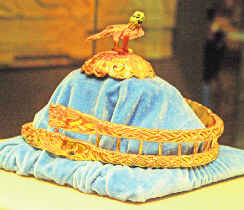 The golden crown of a Xiongnu chanyu (nomadic leader),made during the Warring States Period (475-221 BC),is one of the key exhibits in the museum.