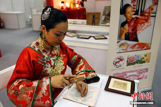 The event’s exhibition hall consists of 8 showcase themes such as “Preface”, “Draw the spring with Chinese ink and wash painting”, “Lanterns and decorations”, “Traditional dancing”, “Auspicious sculpture”, “Bright future”, “Turning lead into gold”, “Tastes good”, and displays nearly 80 Intangible Cultural Heritage programs closely related to the Chinese traditional festival culture in the category of traditional painting and skills such as paper-cutting, New Year’s painting, festival lanterns, kites, dough modeling, sachets, brocades, pottery, lacquer ware, tea-making and so on. Over 80 representatives such as Lang Zhili, Wu Yuanxin and Gao Fenglian performed their delicate craftsmanship at the exhibition’s opening.