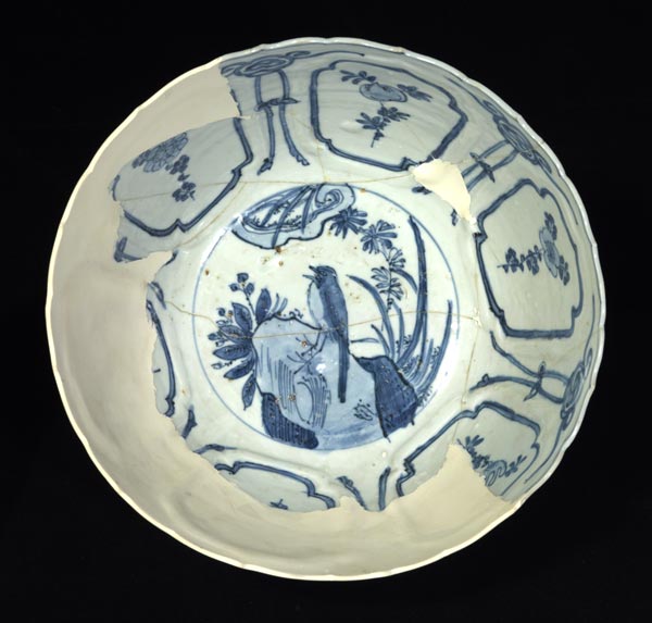 A blue-and-white porcelain bowl of the late Ming Dynasty.