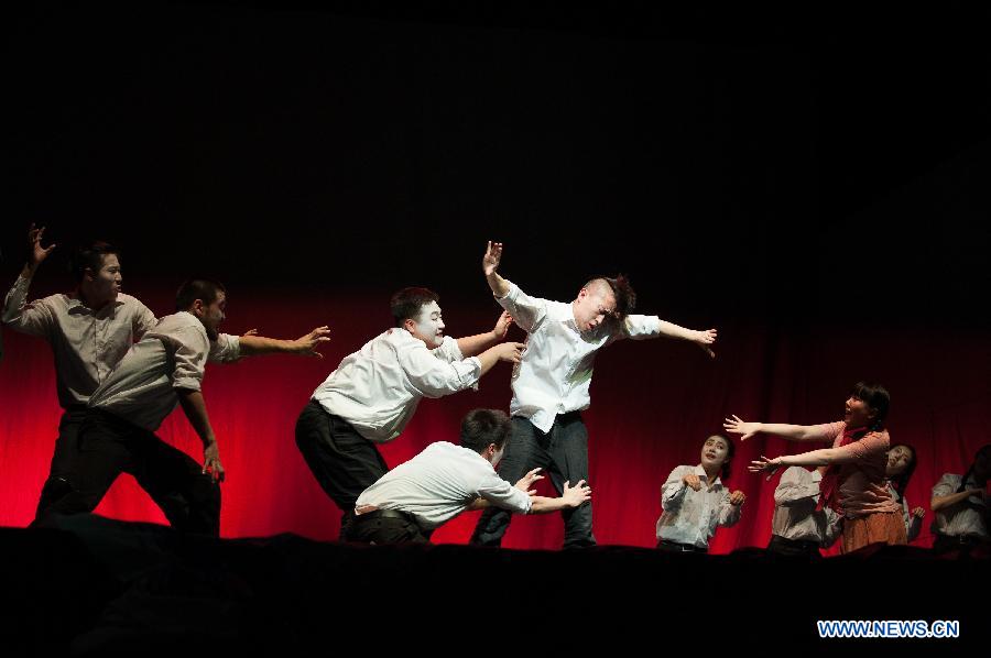 Artists perform in the Chinese drama "To Live" , which is directed by Meng Jinghui, on the stage of Deutsches Theater in Berlin, Germany, on Feb. 8, 2013. This is one of the exchange events of the "2013/2014 Chinese-German language year", and is also the first entry into German mainstream theater of Chinese contemporary drama. (Xinhua/Shang Jing)