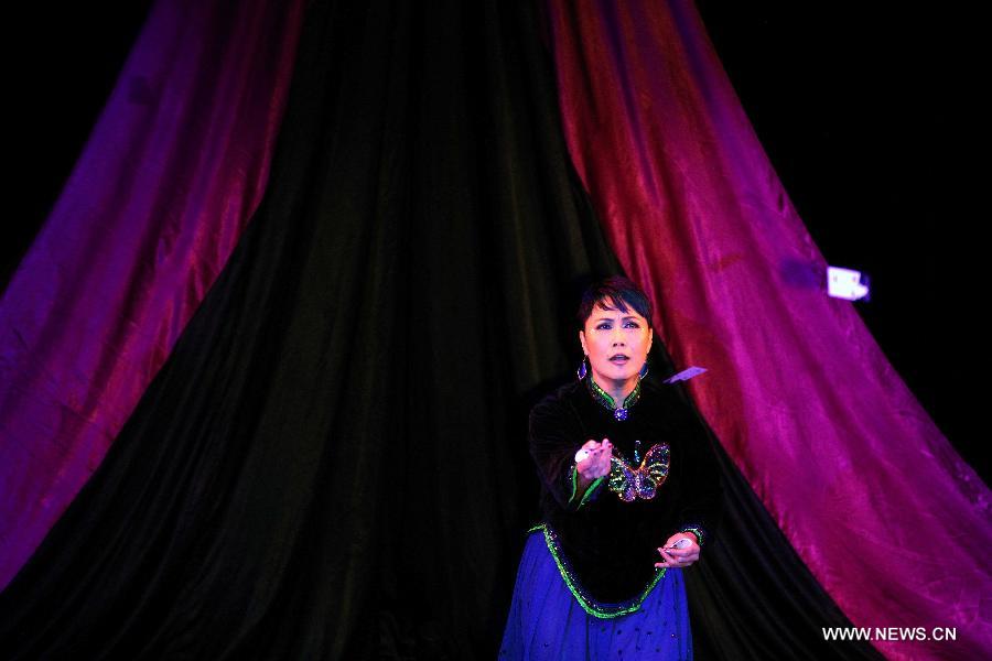 Chinese Canadian magician Juliana Chen performs card magic in Tigerpalast Varieté in Frankfurt, Germany, on Feb. 09, 2014. Juliana Chen is the first woman to be awarded the title of 'World Champion Magician' by the World Congress of Magicians (FISM) and has captivated audiences worldwide with the high technical standard of her 'magic tricks' combined with her unique appeal and artistic charisma. (Xinhua/Luo Huanhuan)