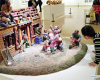 A visitor poses for photo with a 3D painting in an exhibition center in Suzhou, east China’s Jiangsu Province, Feb. 8, 2014. The show has five themes galleries with more than 70 3D paintings shown to the public. (CNS/Wang Sizhe )