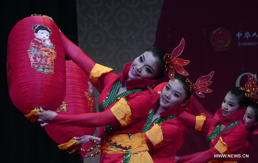 Chinese acrobats perform in celebration of the Year of China-India Friendly Exchanges in New Delhi, India, Feb. 13, 2014. (Xinhua/Partha Sarkar)