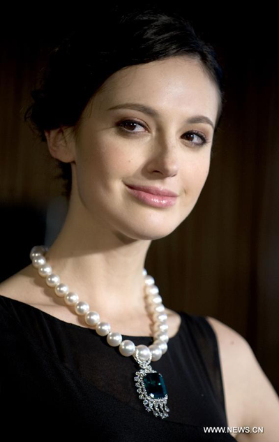 A model displays jewelry during a press conference of the 31st Hong Kong International Jewellery Show in Hong Kong, south China, Feb. 18, 2014. The show will run from March 5 to 9 at Hong Kong Convention Exhibition Center. (Xinhua/Zhao Yusi)