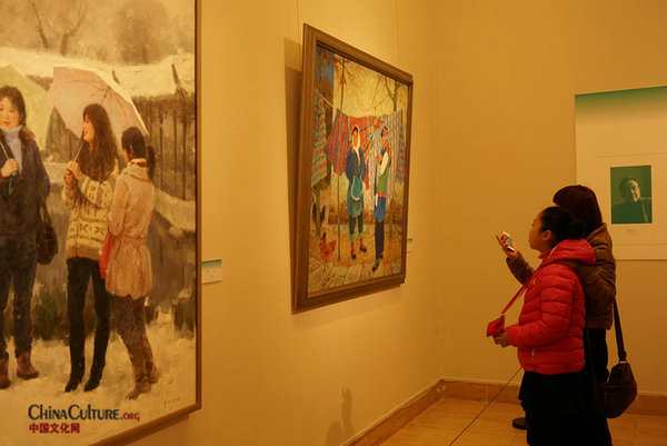 Visitors view the paintings at the Shen Xinggong Oil Painting Exhibition at the National Art Museum of China, Beijing, Feb. 23, 2014. Over 100 pieces of Shen Xinggong’s oil paintings are on display at the exhibition. [Photo/ Chinaculture.org]