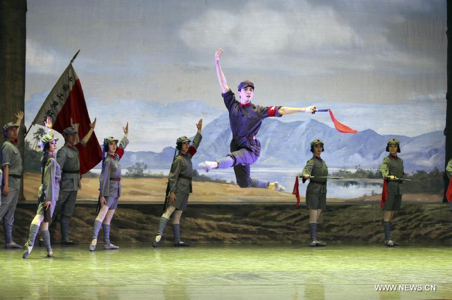 Dancers perform in the ballet drama "The Red Detachment of Women" at the Tianjin Song and Dance Theater in Tianjin, north China, Feb. 28, 2014. The theater will give a serious of classical dramas to make local people have more chances to enjoy them this year. (Xinhua/Wei Bing) |