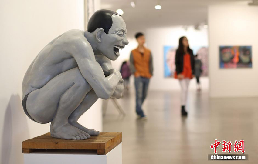 "Big Face - Yue Minjun’s new arts exhibition” was opened in Nanjing on April 8. A figure with laughing big face and his works in 2013 including “Skin Series”, “Re-portrait Series”, “Overlapping Series” and “Maze Series” are displayed at the exhibition which attracts many arts lovers and visitors.