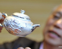 A visitor takes photo of advertisements and illustrations on display during an exhibition of Shanghai-style dress and fashion at Shanghai Textile and Costume Museum in Shanghai, east China, April 22, 2014. (Xinhua/Liu Xiaojing)